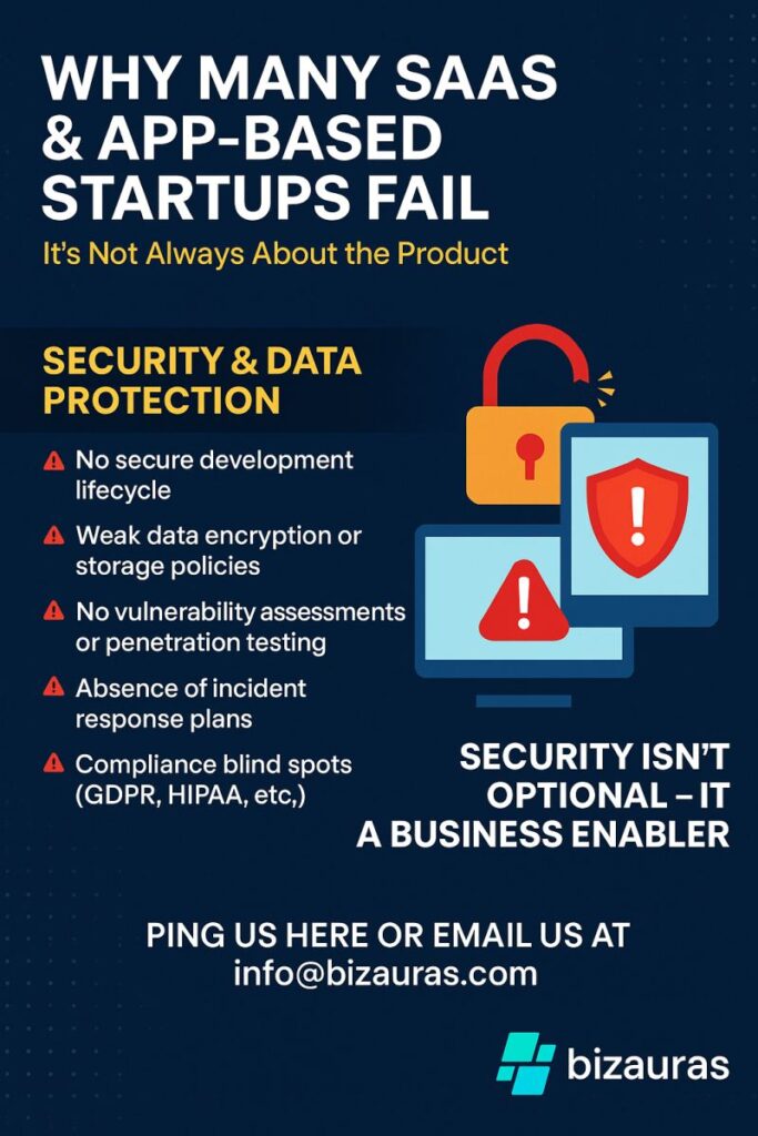 Startups fail for more reasons than just having bad products. Bizauras helps SaaS teams avoid security blind spots and build resilient, compliant systems from day one.